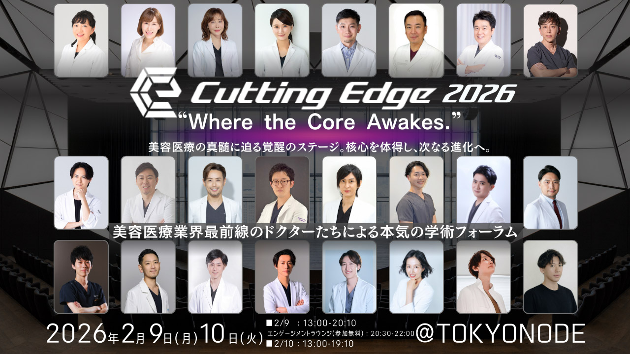 Cutting Edge 2026は、美容医療の本質と判断を共有する実践型フォーラム。最先端知識に加え、現場の思考と選択に焦点を当て、見る・分かる・使える学びを提供します。