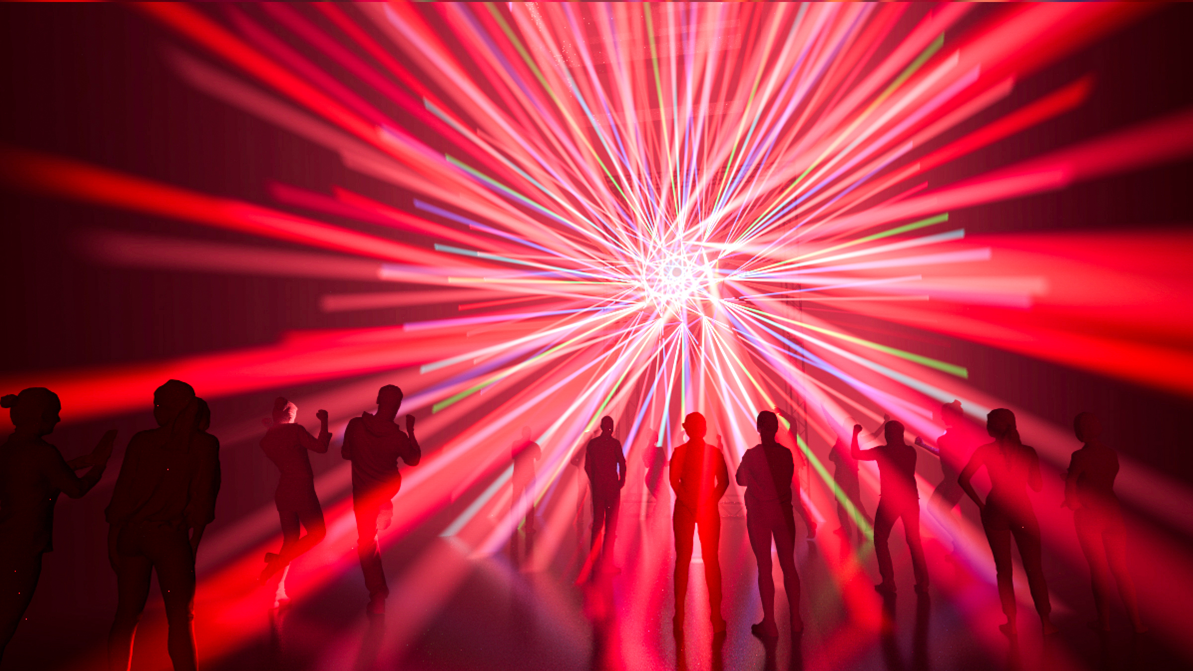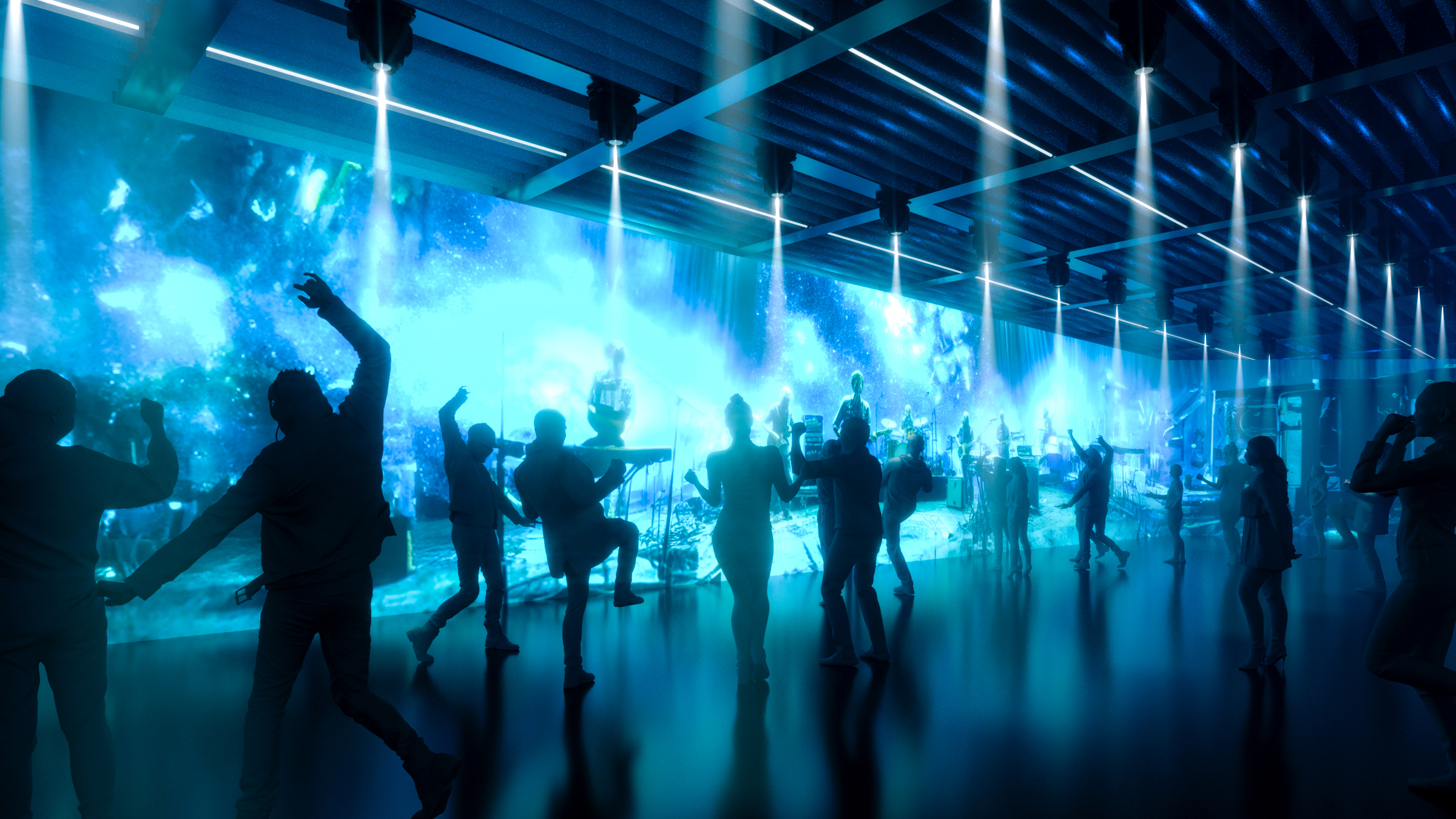 天球型ドームを有するGALLERY Aではプロジェクションマッピングに加えて立体音響を使い、音楽を浴びるような没入体験を。約1,000㎡のGALLERY Bでは、24m×4.5mのスペクタクルなLEDディスプレイと照明演出により、普段は立ち入ることのできないアーティストのステージ上に没入するような体験。そして天高約12mのGALLERY Cでは、ファイバービーム※による光の演出と、AIとともに創造された音楽に没入する体験を提供します。