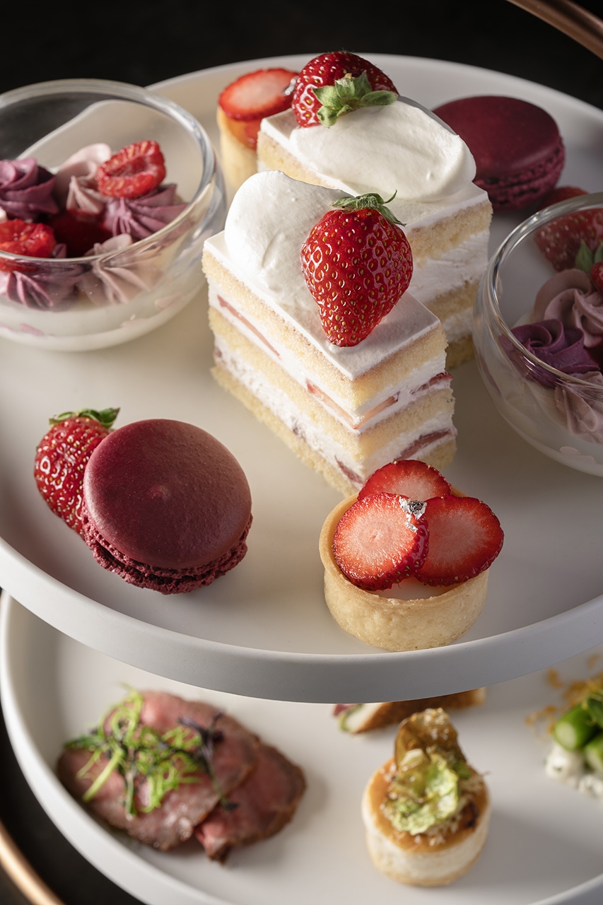 完熟度と味わいに徹底的にこだわった加藤農園のプレミアム苺と、彩り豊かなベリーを主役にした、爽やかな酸味とやさしい甘さを合わせた苺とベリーのアフタヌーンティー。