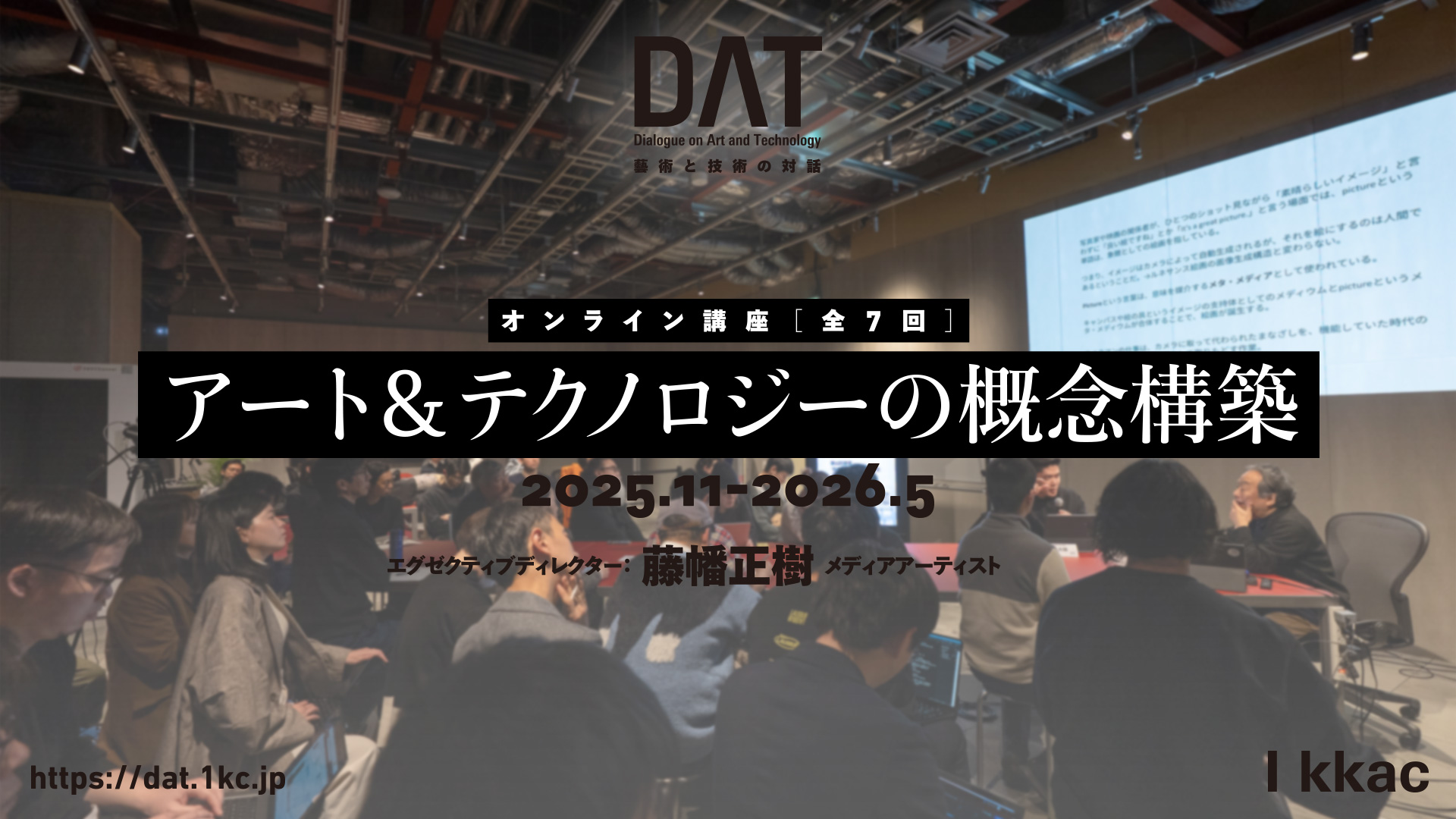 「藝術と技術の対話(DAT)」は、アート&テクノロジー分野の持続的な発展に寄与するため、批評と対話を促進する専門家の育成を目的とするプロジェクトです。今後3年にわたり、講座や調査研究、ブートキャンプ、国内外での展覧会の企画・実施、シンポジウム等の多角的なプログラムを展開する予定です。