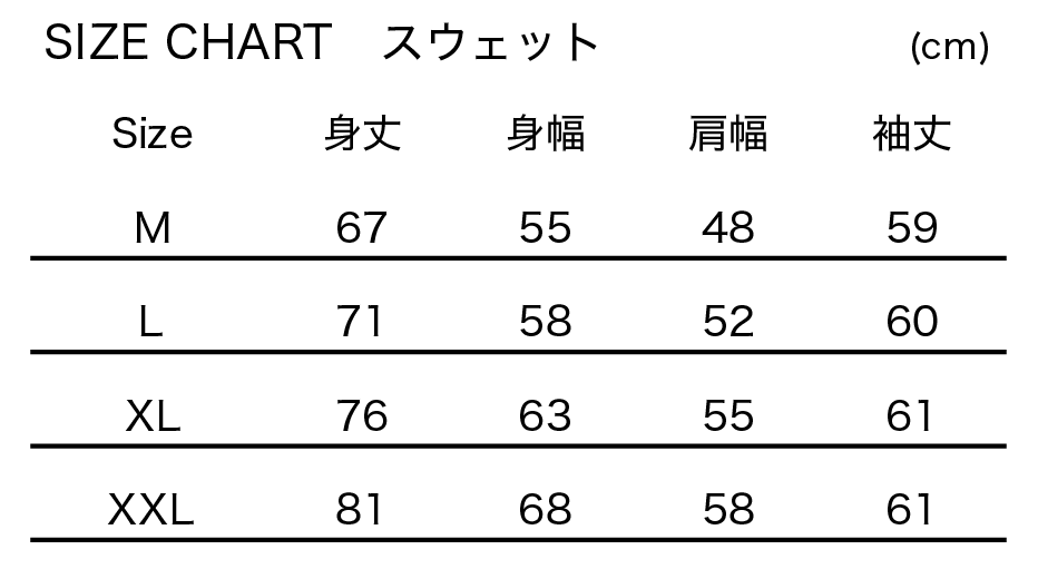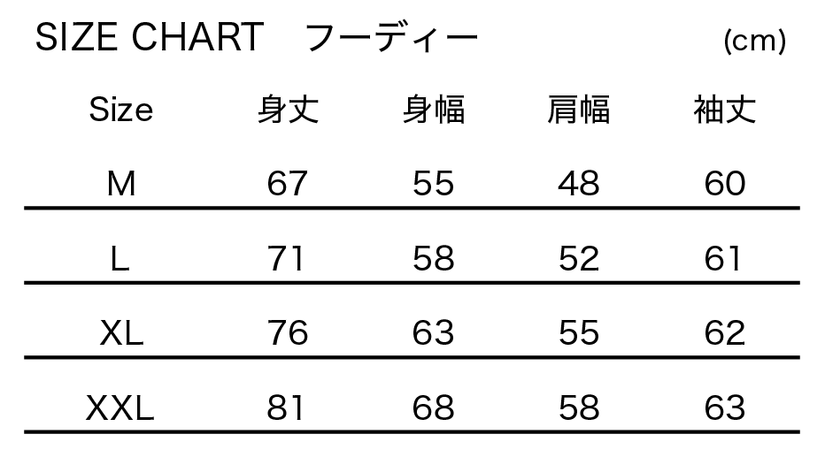 ※サイズチャートは、オリジナルグッズの商品のみ対象です